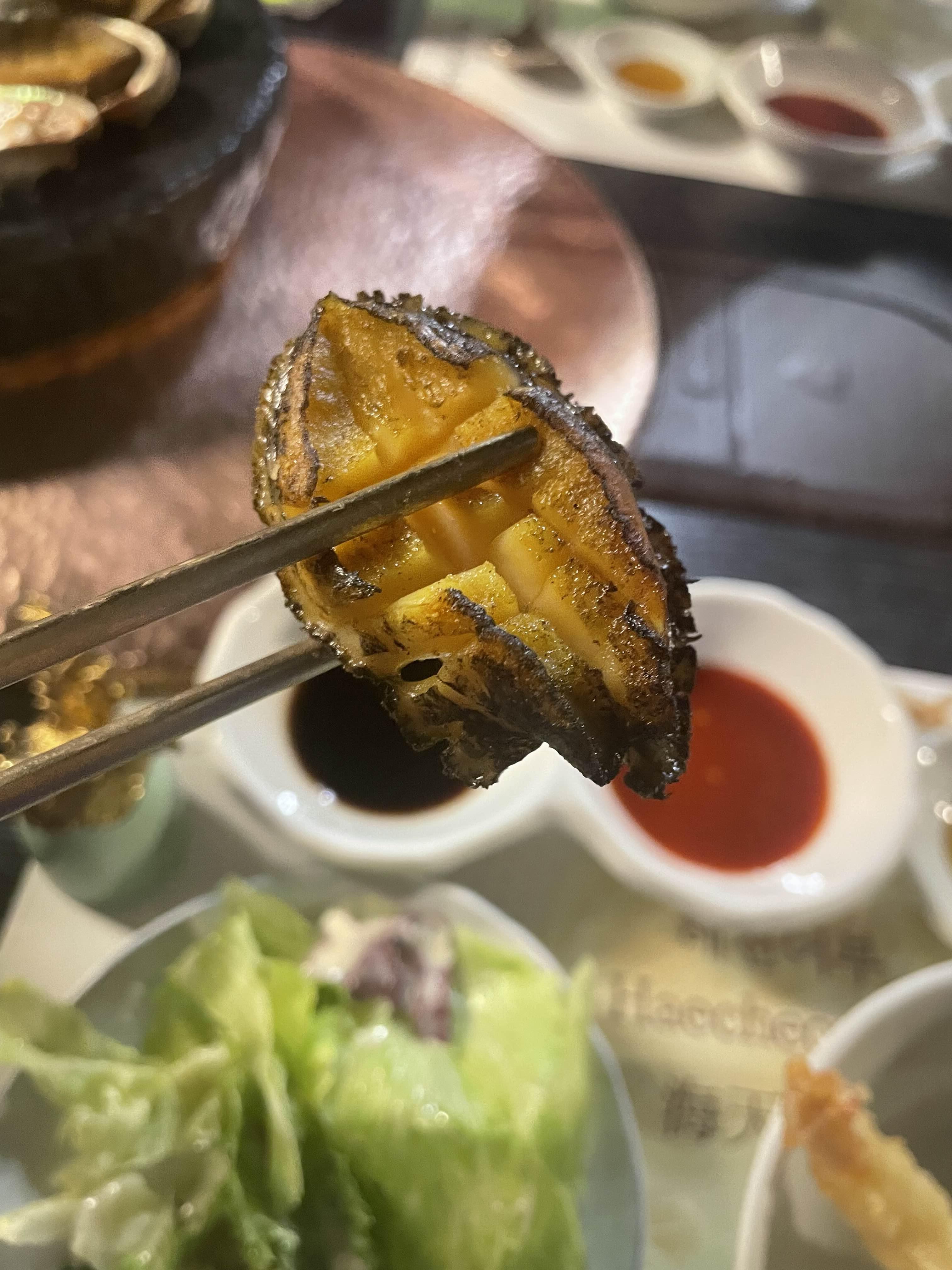 그리고 세번째로 나온 에피타이져!! 전복구이입니다. 전복살과 내장살을 따로 나오기 때문에, 전복을 1인당 2조각 (살+내장)으로 먹으면 되요. 오마카세이기때문에, 1인분씩이라는 점 알아야해요.